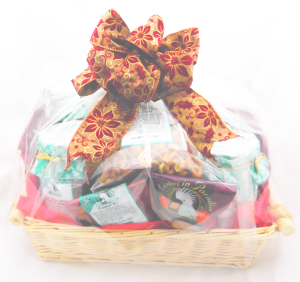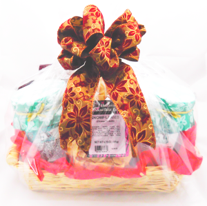 The holiday gift baskets are festive gestures to start the season greetings. The baskets are filled with 100% of Cookies in Paradise products that are 100% manufactured in Hawaii